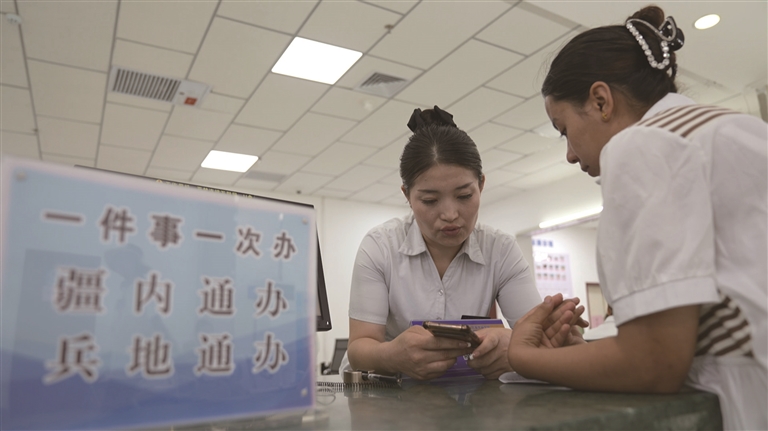 7月9日,家住喀什地区莎车县的居民布再乃普·艾海提来到玛纳斯县政务服务中心办理异地失业保险业务。“以前必须返回参保地才能办理,现在全疆14个地州市都能异地办理,非常方便。”布再乃普·艾海提说。