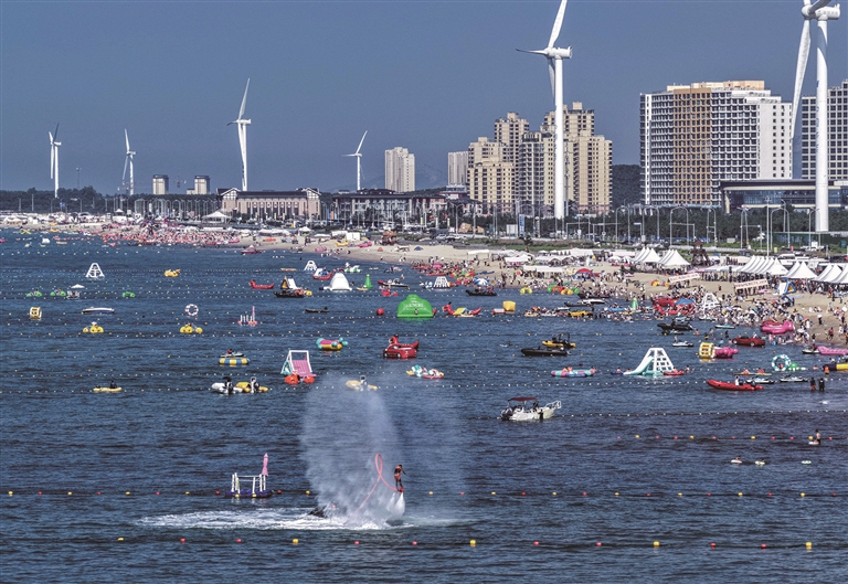 7月12日,游客在山东省荣成市那香海景区游玩(无人机照片)。□新华社发(李信君摄)