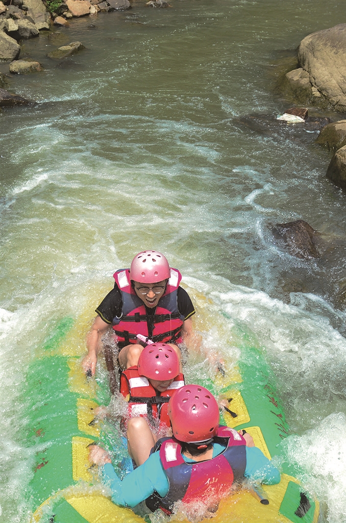 7月12日,游客在浙江省三门县珠岙镇仙人峡漂流。