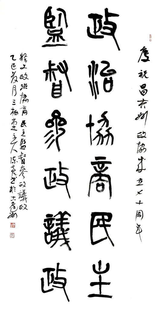 七十载团结奋斗,七十载同心筑梦。2025年是新疆维吾尔自治区成立70周年,也是昌吉回族自治州政协成立70周年。为隆重庆祝在中国共产党领导下昌吉州政协事业发展的辉煌成就,深情回顾昌吉州政协与各族各界政协委员同心同德、共襄盛举的光辉历程,生动展示全州经济社会发展取得的重大成果,进一步凝聚人心、凝聚共识、凝聚智慧、凝聚力量,州政协办公室联合州文联等单位共同举办“丹青描绘政协情怀 笔墨书写时代华章”主题书画展。此次展览旨在以书画艺术为载体,讴歌中国共产党领导的多党合作和政治协商制度的伟大实践,彰显政协委员和各族各界人士的使命担当,深化“五个认同”,铸牢中华民族共同体意识,为奋进新征程注入强大精神动力。