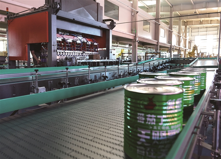 在昌吉国家农业高新技术产业示范区,笑厨公司新建的番茄调味酱和饮料生产线正全力运转。“这里日产番茄调味酱260吨、番茄饮料180吨。”笑厨公司常务副总经理刘伟向记者介绍。