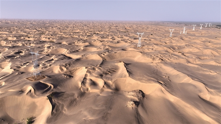 穿过浩瀚沙海,串起一片片绿洲,“能量环”将散落的风光电汇成绿电洪流,照亮更多发展新图景。