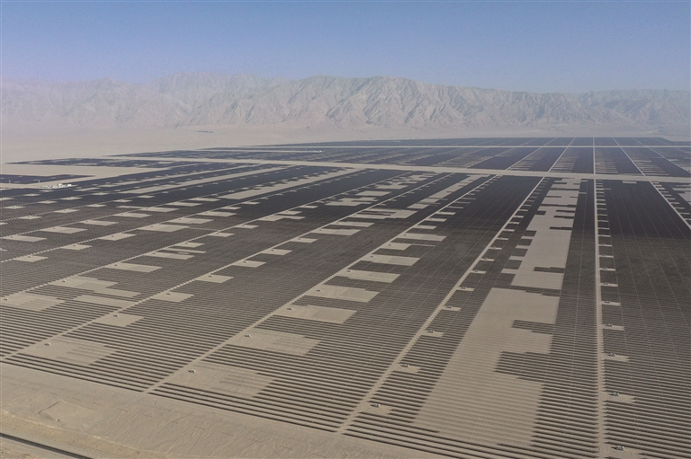 目前,南疆若羌县通往四川的特高压直流输电通道的配套电源、以及通往青海的交流输电通道的变电站均已开工建设……据国网测算,如在南疆开发1亿千瓦光伏电力,再输送至中东部,当地可减少2500万千瓦火电装机。