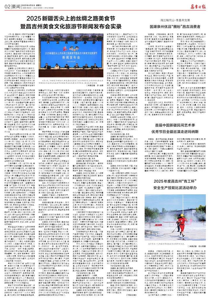 8月4日,昌吉州人民政府在乌鲁木齐召开新闻发布会,介绍“新疆是个好地方,醉美最近是昌吉”2025新疆舌尖上的丝绸之路美食节暨昌吉州美食文化旅游节相关情况。