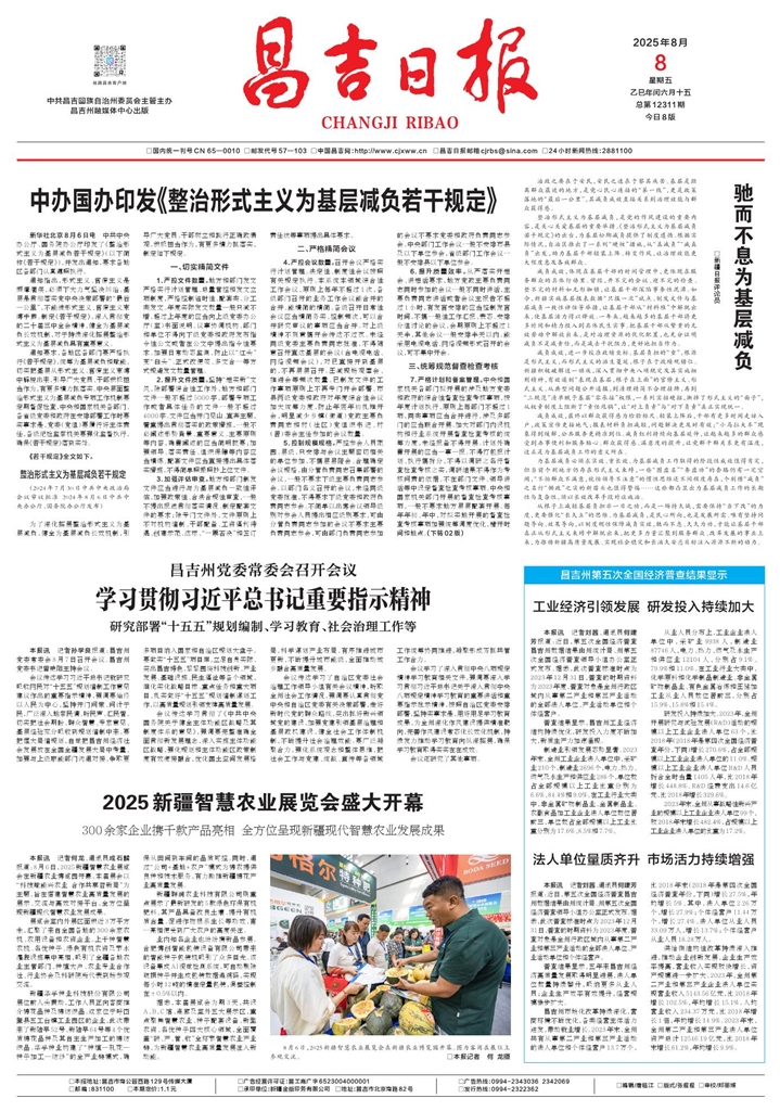中共昌吉回族自治州委员会主管主办 昌吉日报社出版