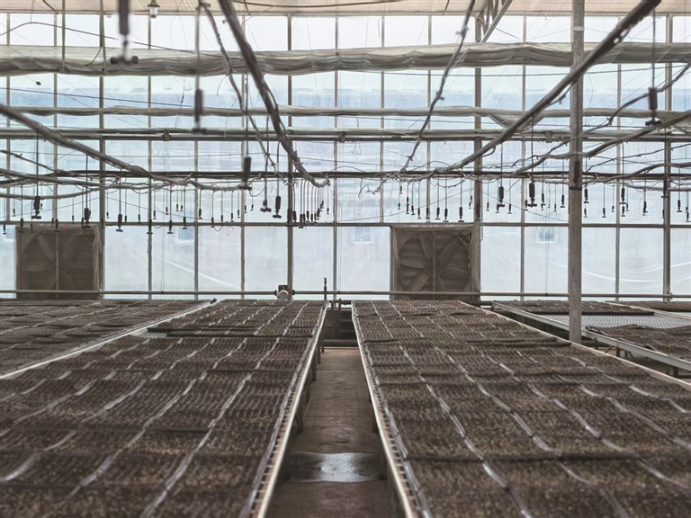 在每个大棚门口,还建有一个综合大数据智控操作平台。这个平台可以实现对整个大棚湿度和水肥一体化设备运行情况的监控和巡查。植株需要浇灌时,营养液“涨潮”由滴头的出水口漫出,在基质盆淹没3厘米深的根系后,静止15分钟,让种苗充分吸收;当植株喝饱需放水“落潮”时,再打开基质盆下端的排水口,让营养液自动回流到蓄水池。大棚浇灌利用“井水补充+蓄水池+节水设施”模式,通过井水补充提水,加压至蓄水池,实现重力自流灌溉,破解“水难题”,实现“旱能灌、涝能排”。舒河霖介绍:“每次灌溉只湿润草莓根部,每天保证合适的水分。大棚内还安装了智能物联网设施,可以根据果蔬土壤湿度,自动开启滴灌设施,技术人员在手机上就能操作,节水效果特别好。”