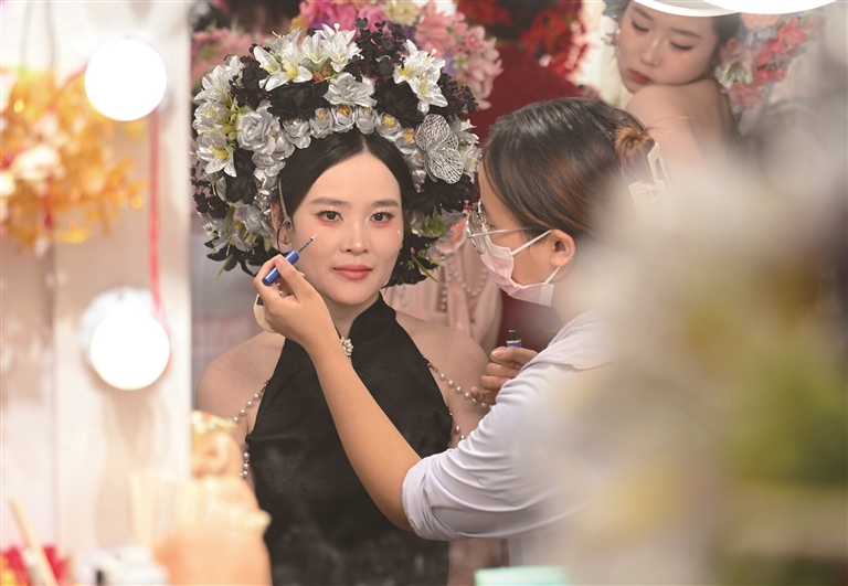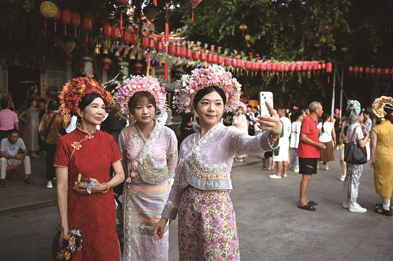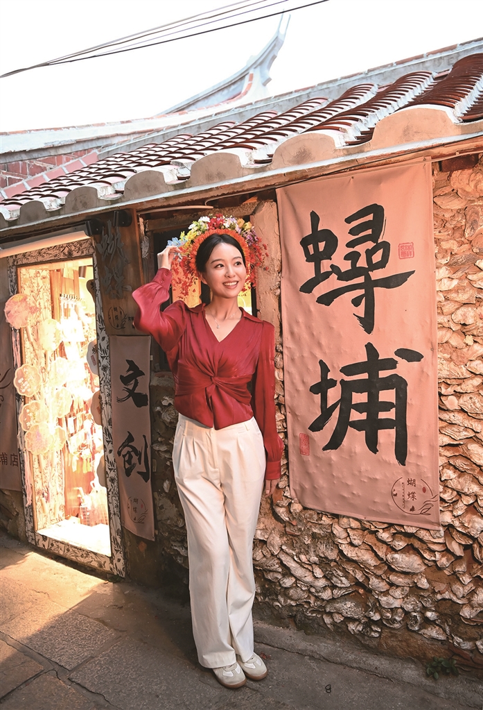 2025年以来,蟳埔村推出簪花、旅拍、问海、巷遇、听音、看戏、品鲜、乐购等“八大体验”,带动文创、餐饮、民宿等业态发展,当地居民收入显著提高。目前,蟳埔村有近300家旅拍店铺,游客日均约2万人次,“簪花围”吹起的文旅热潮东风让古老渔村焕发新生。