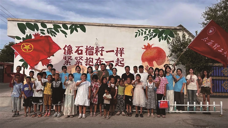 暑期以来,太原理工大学社会实践团在丽阳村开展了为期半个月的实践活动。大学生们挥洒创意,精心绘制了“石榴籽”“哪吒·疆味”“绿水青山·家园”“红石榴·晋阜情”等主题墙绘,在乡村留下绚丽而深刻的青春印记。实践团还开设了“红领巾”小课堂,设置安全教育、民族团结教育、趣味物理实验等特色课程,通过知识传递与文化交融,让铸牢中华民族共同体意识的种子在轻松愉快的氛围中深植于孩子们心田。