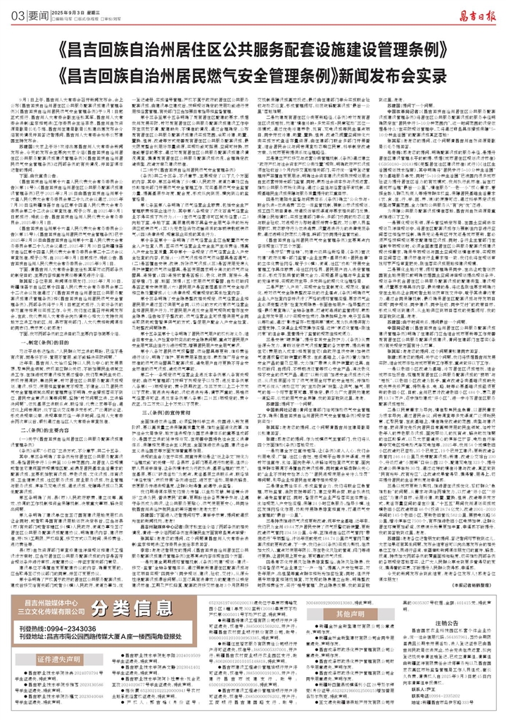 《昌吉回族自治州居住区公共服务配套设施建设管理条例》《昌吉回族自治州居民燃气安全管理条例》新闻发布会实录