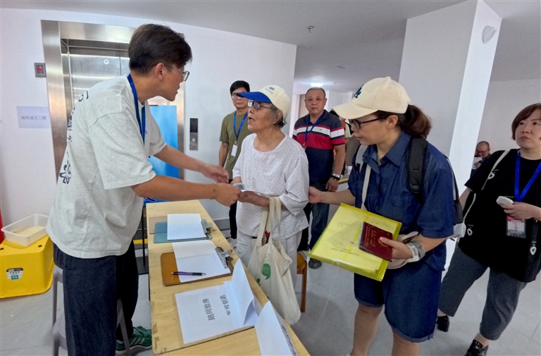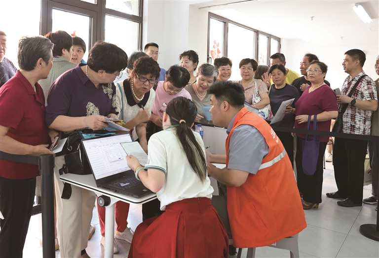 9月15日,谈家桥小区居民排队办理回搬登记手续。
