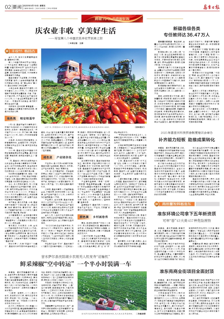 吉木萨尔县庆阳湖乡农用无人机变身“运输机” 鲜采辣椒“空中转运” 一个半小时装满一车