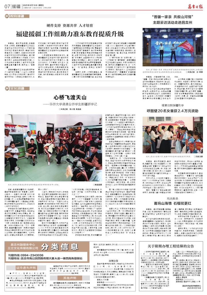 福建援疆工作组助力准东教育提质升级