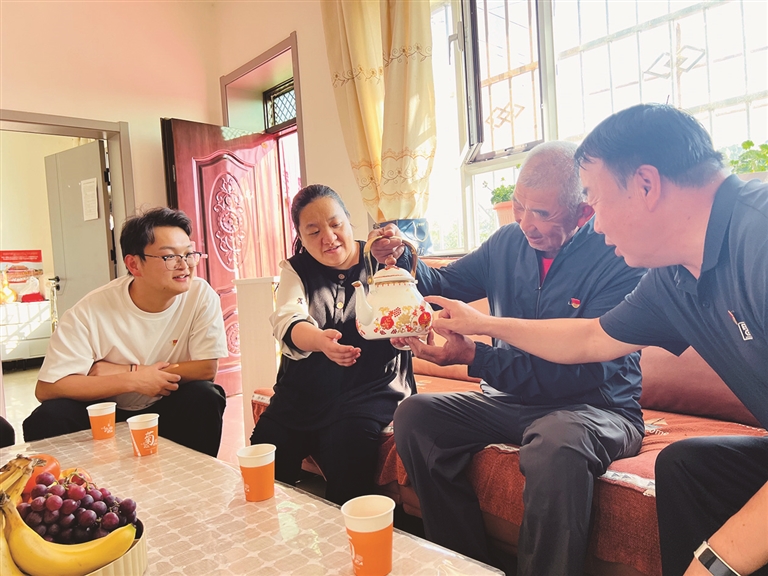 “党中央始终把新疆人民放在心上,这次送来的茶壶既好看又实用,马上就要到国庆节、中秋节了,等到一家人团聚的时候,我准备用它沏茶,那茶的味道也会格外香。”王世有说。