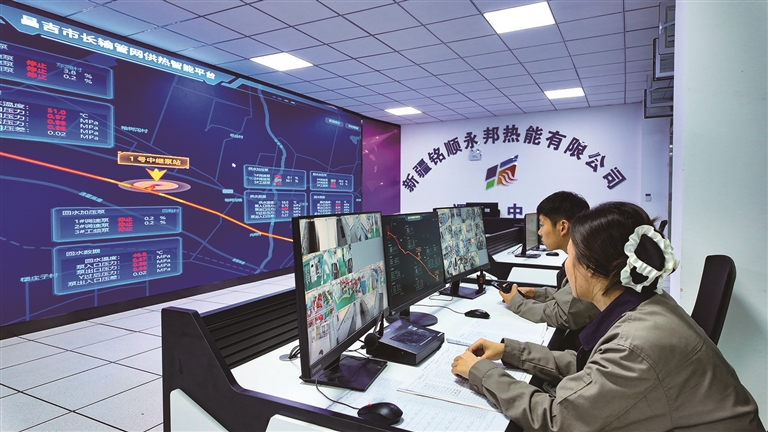 新疆铭顺永邦热能有限公司承担着昌吉市城区乌伊路以北、长宁路以西、塔城路以南区域的供热任务,负责44.4公里长输管网、3座泵站和18座换热站的运营,总供热面积达700万平方米。记者在该公司生产作业区看到,工作人员正通过监控系统查看温控设备,并仔细检查供热机组,现场一片繁忙。