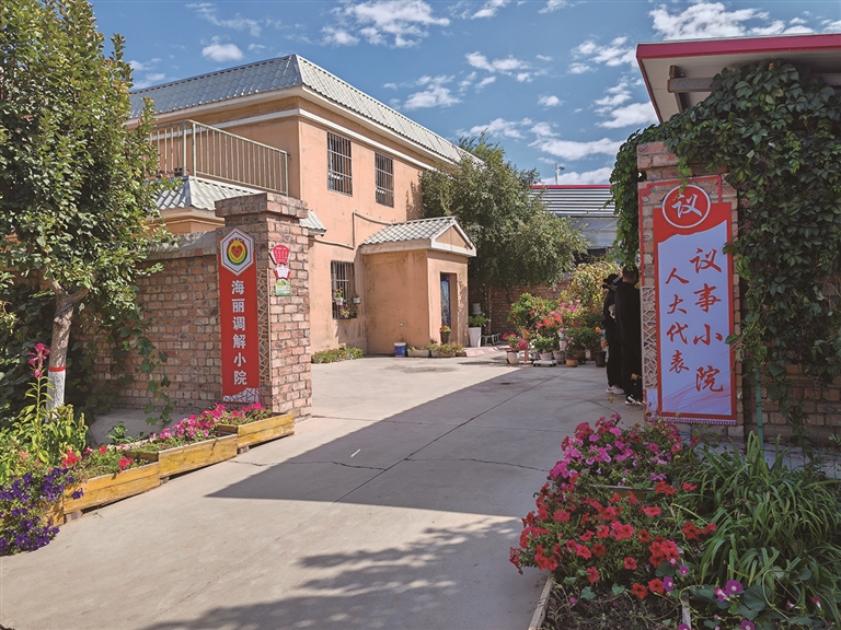 在六工镇人大代表、十三户村村民杨海丽家的“人大代表议事小院”里,月季和牵牛花开得正旺。这里不仅是她的家,也是村子民情民意的“收集站”。