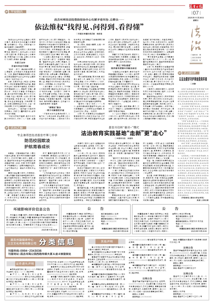 本报讯 记者米桃乐报道:为强化校园法治教育,有效预防和遏制校园欺凌行为,切实守护青少年身心健康,近日,昌吉市政法委组织专业律师团队走进昌吉市第七中学,开展“防范校园欺凌 护航青春成长”主题法律宣传活动,为全校师生送上一堂生动实用的法治教育课。