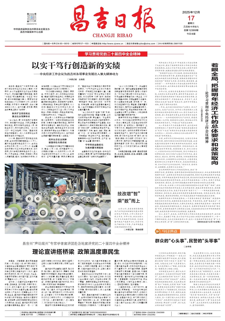 以实干笃行创造新的实绩——中央经济工作会议为昌吉州各项事业发展注入强大精神动力