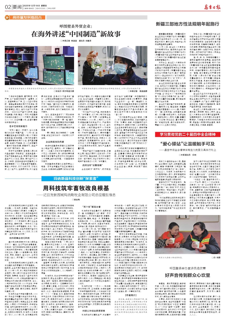 “把种子牢牢攥在自己手里。不单是引进,还要提升,形成自己的东西。这就是要久久为功地长期坚持,科技工作者就是要有这样的情怀。”张维忠说。他负责的日发新西域玛纳斯牧业有限公司取得令人欣喜的成绩:2019年通过自治区种畜场验收,2020年通过国家畜禽养殖标准化示范场验收,2021年被评为自治区萨福克羊核心育种场,2021年通过农业农村部两病净化创建场验收并取得自治区布鲁氏菌病净化场资质,2023年通过国家级布鲁氏菌病净化场验收。张维忠获评庭州优秀科技人才,在他带领的科技团队的努力下,日发新西域玛纳斯牧业有限公司已成为新疆的畜牧业明星企业。