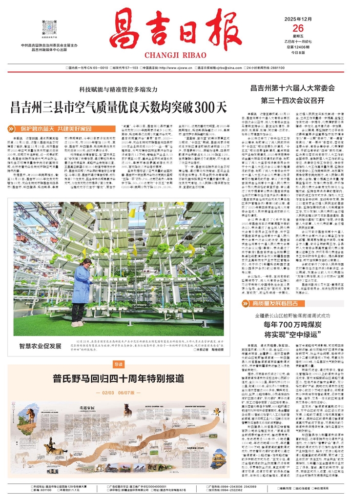 中共昌吉回族自治州委员会主管主办 昌吉日报社出版