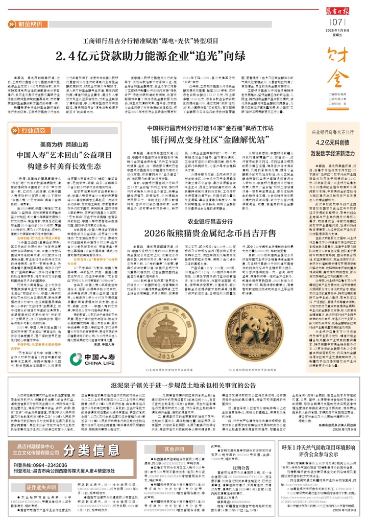 目前,2026版熊猫贵金属纪念币已在中国农业银行各销售渠道全面开售。农业银行昌吉分行依托遍布昌吉州的网点网络与专业理财服务团队,可为客户提供包括一对一咨询、实物鉴赏、便捷购买等一站式全方位服务。熊猫币每年更换图案,2026版作为系列关键一环,具有独特收藏意义,有意者可前往就近网点或关注线上平台获取详情。