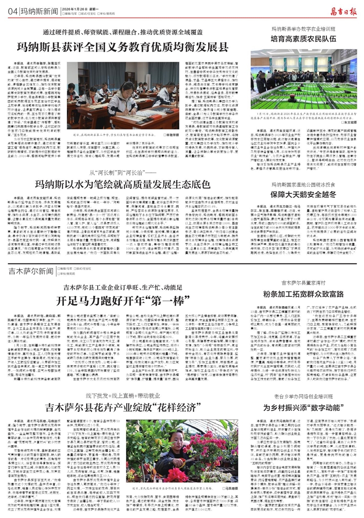 本报讯 通讯员朱文斌报道:玛纳斯县始终坚守生态优先、绿色发展理念,以河湖长制为总抓手,织密水环境治理责任网络,通过系统管控、精准施策,推动水资源、水生态、水环境协同改善,让碧水清流成为县域高质量发展的鲜明底色。