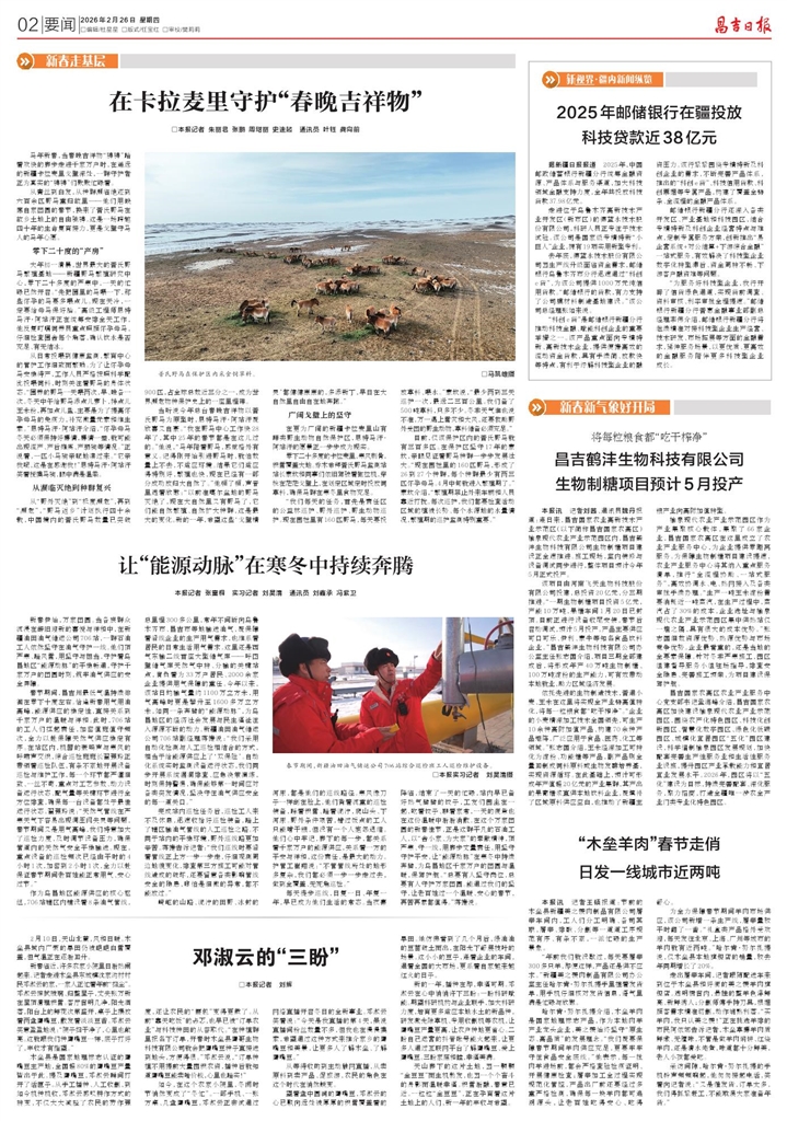 该项目由河南飞天生物科技股份有限公司投建,总投资20亿元,分三期推进。“一期生物制糖项目投资5亿元,产能10万吨,果糖车间1月20日已封顶。目前正进行设备收尾安装,春节后启动调试,预计5月投产。产品主要供应可口可乐、伊利、蒙牛等知名食品饮料企业。”昌吉鹤沣生物科技有限公司办公室主任张志国介绍,项目三期全部建成后,将形成年产40万吨生物制糖、100万吨淀粉的生产能力,可有效带动本地就业,助力区域经济发展。