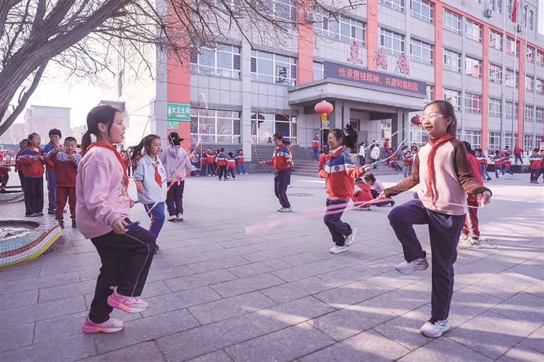 春风送暖,万物生长。课间铃声一响,昌吉市各中小学的学生们纷纷走出教室,在操场上、球场边或地面游戏区域尽情玩耍。跳跳绳、打沙包、跑步、踢足球……欢声笑语交织成活力乐章,校园处处洋溢着蓬勃朝气。