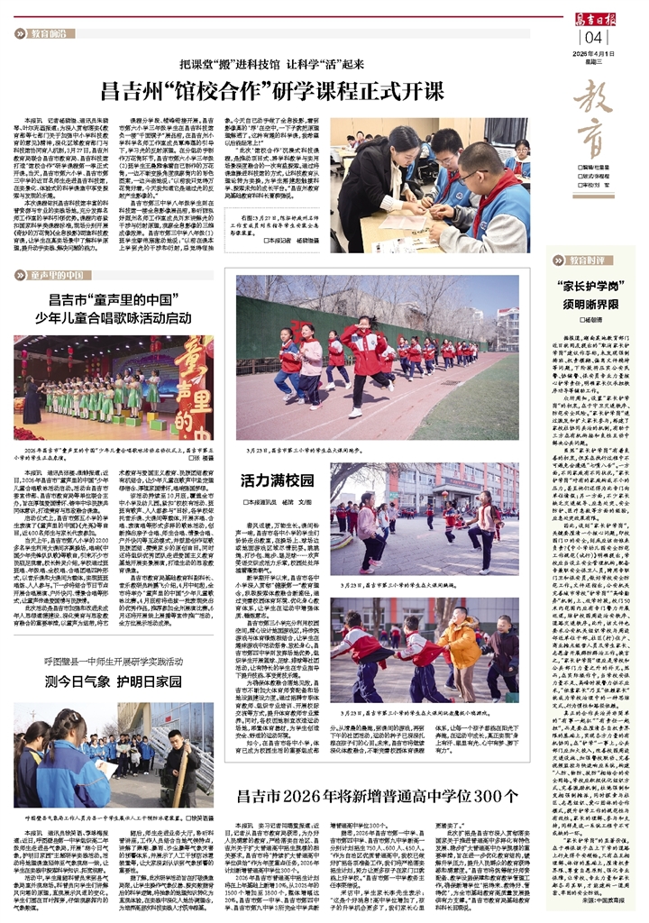 昌吉市2026年将新增普通高中学位300个