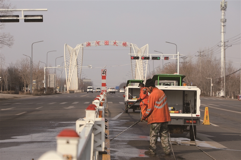 本报讯 通讯员王仁静、苗鑫榕、李永旭报道:春风送暖,万物复苏。阜康市紧抓春季市容整治与绿化养护的黄金时节,全面推进城市精细化管理,同步开展隔离护栏集中清洗和树木涂白防护两大专项行动,以精细举措擦亮城市“颜值”,筑牢绿化防护线,让城区面貌焕然一新。