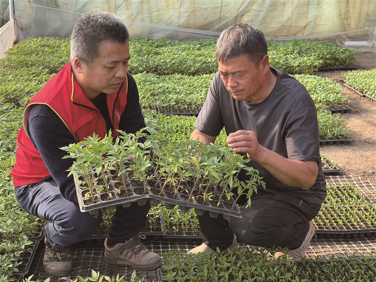 近日,阜康市九运街镇党员农业技术骨干在村育苗大棚向种植户面对面示范讲解,手把手传授经验,助力农户科学种植、高效管护。